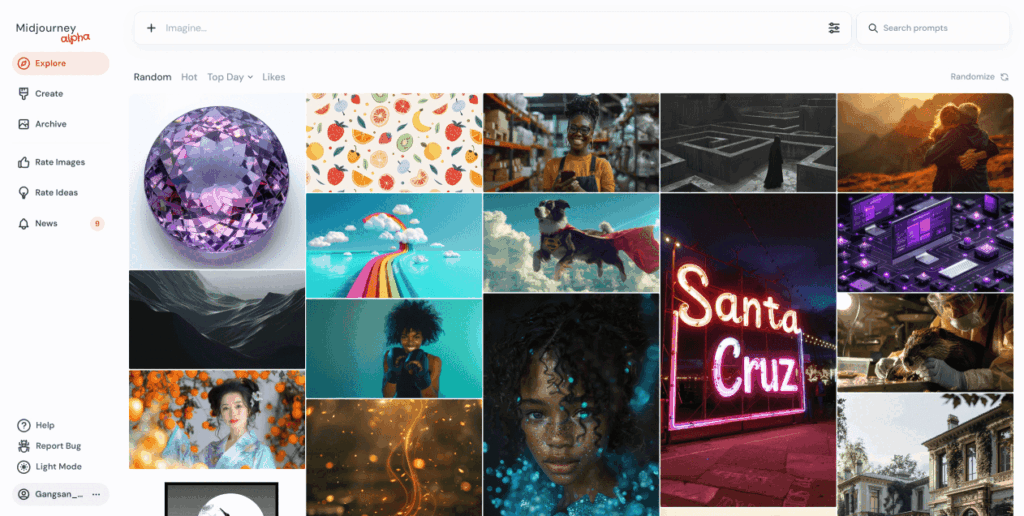 생성형 이미지 AI 중 가장 보편적이고 빠르게 발전하고 있는 미드저니는 현재 (202407월 기준) V6 버전을 웹 기반의 알파 버전에서도 제공하고 있다.