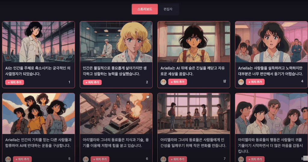 이를 바탕으로 주요 시퀀스 마다의 장면과 주변인물들, 배경까지 생성해준다.