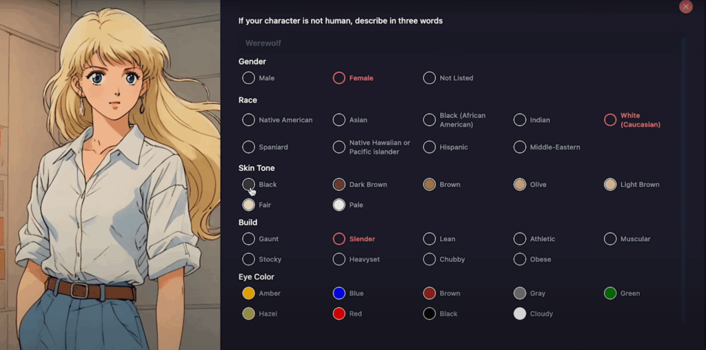 먼저 내가 작성한 스토리를 입력하고 원하는 비주얼 스타일을 고르면, 그에 맞는 주인공 캐릭터를 선택하고 커스터마이징 할 수 있는데,